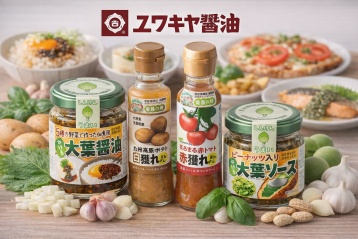 ユワキヤ醤油のロゴは昭和3年に商標登録されました。ユワキヤのロゴは上から見た樽の中に岩城屋の岩の文字をあしらっており、上下左右の突起は注ぎ口をイメージしております。このロゴが出来たことで、岩城屋からユワキヤ醤油とカタカナに変わったのではないかと推測されます。和紙に筆書きの商標登録願が時代を感じさせます。