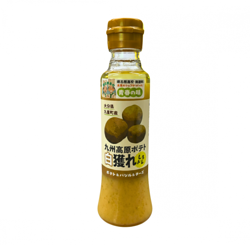 九重町産のじゃがいもを使用した、あまり見かけないじゃがいものドレッシングです。まろやかなコクに、バジルとチーズが香るシーザーサラダ風の味わいに仕上げました。サラダはもちろん、温野菜やディップソースとしても相性抜群です。