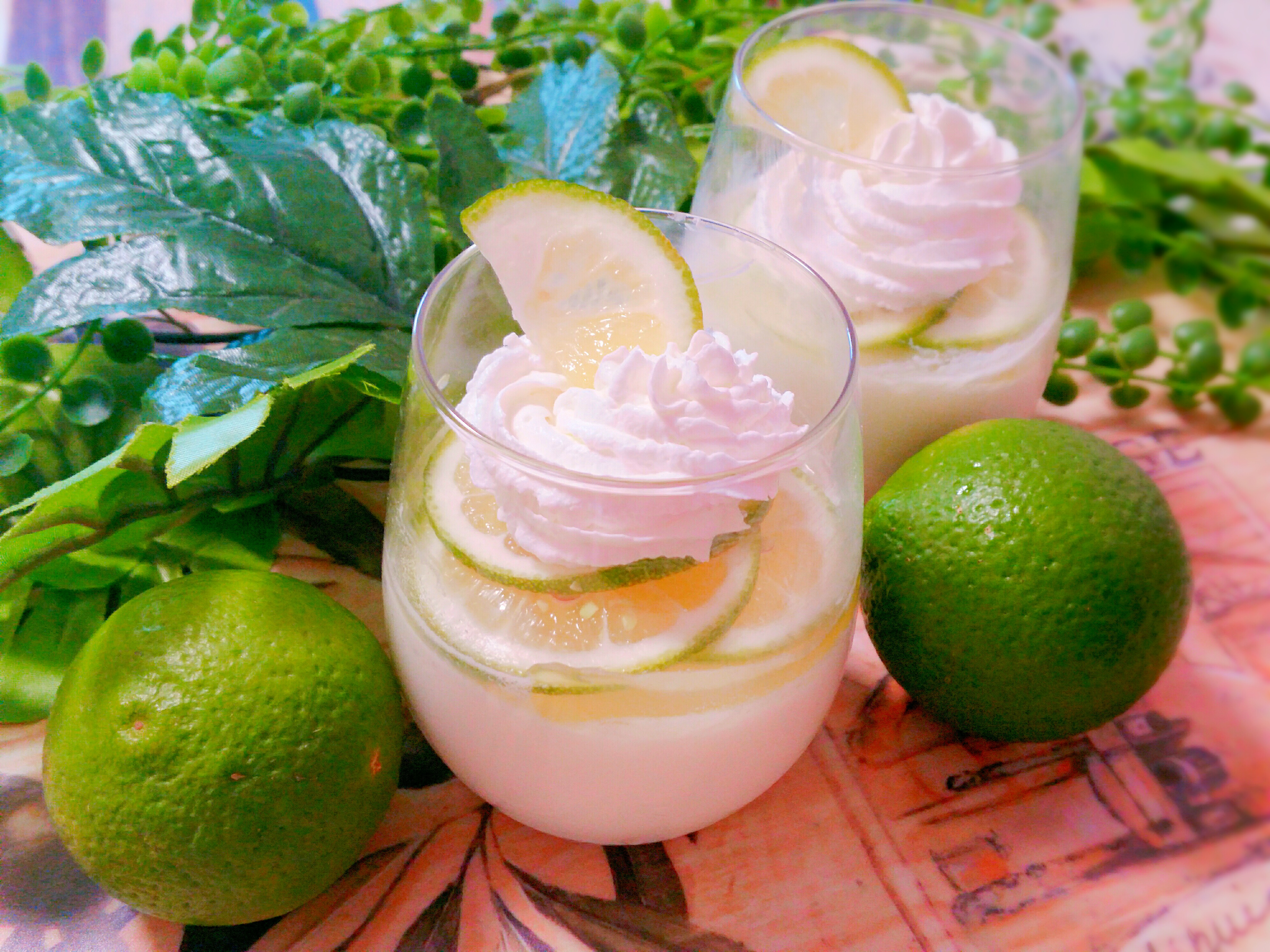 - プリンが出来たら生クリームとかぼすカットを飾り付けて出来上がり!